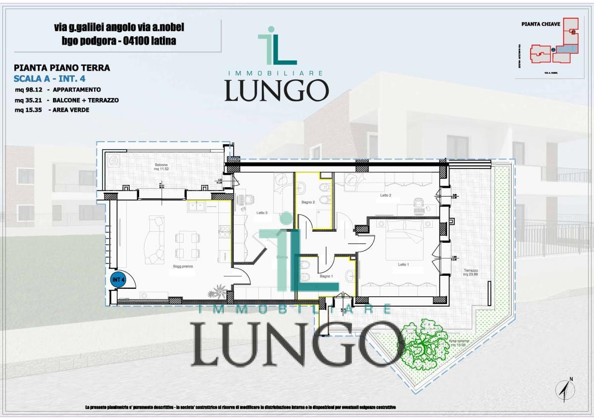 Il Residence Magnolia è una nuova costruzione in vendita a Latina, in via Nobel angolo via Galilei a Borgo Podgora. Costruzioni moderne con tecnologie innovative pensate per garantire alti standard di efficienza energetica, che assicurano elevati risparmi economici nella gestione quotidiana della casa. Cappotto termico, infissi di ultima generazione, impianto fotovoltaico, pompa di calore con sistema di riscaldamento e raffrescamento privato per ogni unità abitativa. Possibilità di scelta tra varie tipologie anche con giardino, terrazzo abitabile e garage. Acquista la tua casa in classe A4 direttamente dal costruttore senza spese di agenzia.